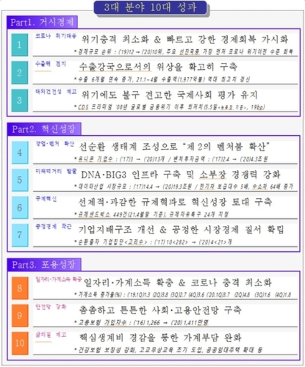 정부는 추진 성과를 '3대 분야 10대 성과'로 요약했다.