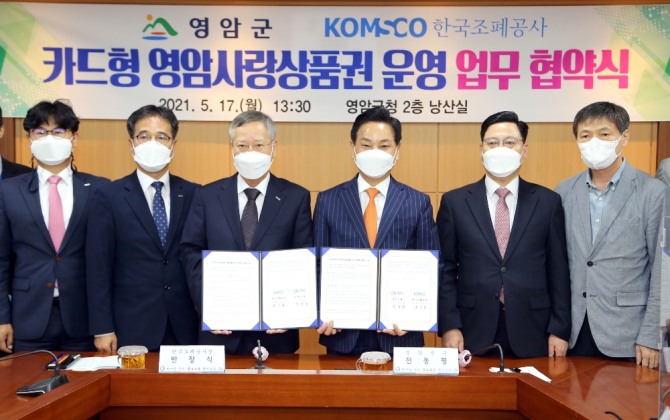 이미지 확대보기이번 협약식은 영암사랑카드 제작 및 발행을 위한 상호업무 협의와 결제수단 다양화, 영암사랑상품권 이용 확산을 통한 지역경제활성화를 위해 마련되었다.