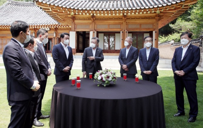 문 대통령은 "고충을 이해한다. 국민들도 공감하는 분이 많다"며 "지금은 경제 상황이 이전과 다르게 전개되고 있고, 기업에 대담한 역할이 요구된다는 점도 잘 알고 있다"고 말했다고 이 관계자는 전했다.