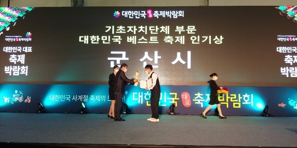 이미지 확대보기군산시는 지난 9일부터 11일까지 부산 벡스코에서 열린 ‘제1회 대한민국 대표축제 박람회’에서 대한민국 베스트 축제어워드 기초자치단체 부문 인기상을 수상했다고 28일 밝혔다.