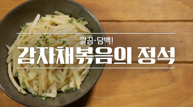 부서지지 않은 감자채볶음 비밀은 채 썬 감자를 국간장과 소금으로 밑간을 해 10분간 미리 재운 뒤 볶는 것이다.
