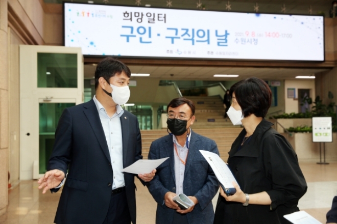 경기도 수원시의회 조석환 의장이 지난 8일 수원시청 본관 1층에서 열린 '2021년 희망일터 구인·구직의 날' 행사 현장을 찾았다.