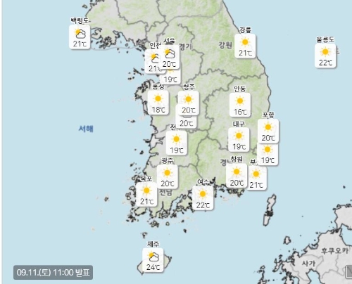 기상청에 따르면 아침 최저기온은 16~22도, 낮 최고기온은 27~32도이다.