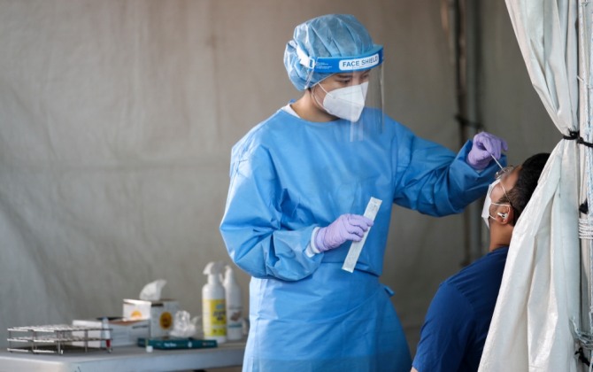 이미지 확대보기12일 오전 서울 송파구 가락농수산물종합도매시장에 설치된 찾아가는 선별진료소를 찾은 시장 상인 및 시민들이 코로나19 검사를 받고 있다. 사진=뉴시스 수도권 중심으로 확산세는 여전한 가운데 13