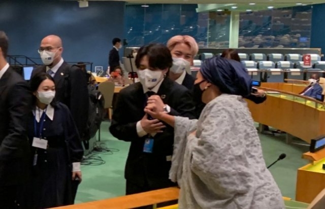 모하메드 부총장은 BTS를 향해 “UN에 다시 돌아온 것을 환영한다”며 “지속가능 발전 목표(SDG)를 세계에 알리는 일을 함께해줘 고맙다”고 했다. BTS는 2018년과 2020년에도 유엔에서 특별 연설을 했다.