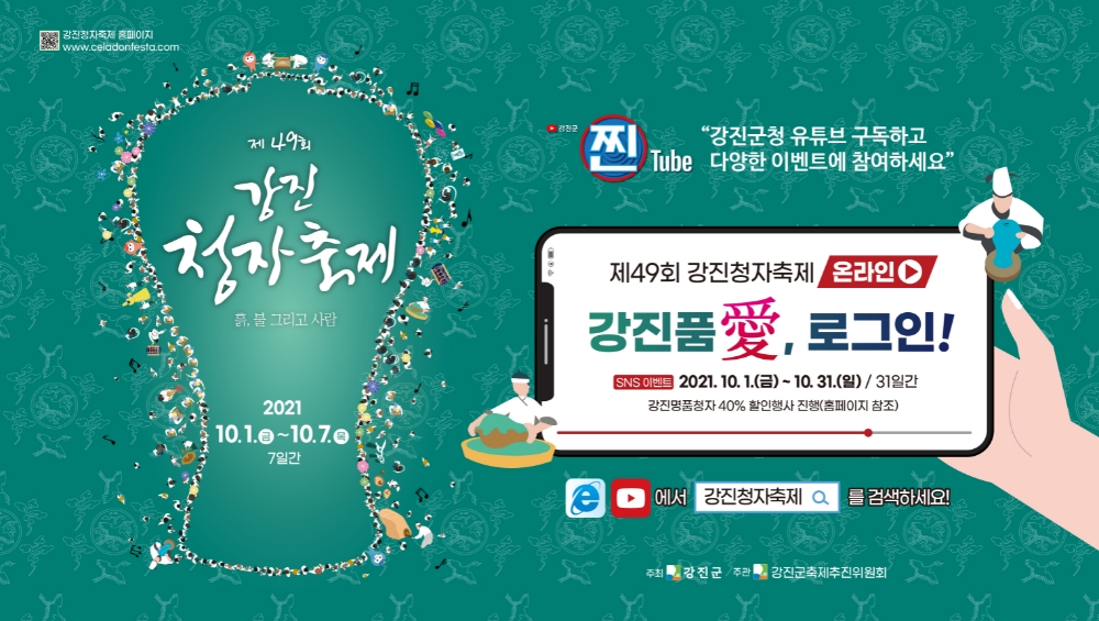 이미지 확대보기강진군은 유튜브 채널(강진군 찐tube)과 축제 홈페이지 등에 축제 운영을 위한 온라인 플랫폼을 구축했으며, 대구면 청자촌 주무대에 온라인 방송 스튜디오를 만들고 다양한 공연과 프로그램들을 유튜브를 통해 생중계할 예정이다.