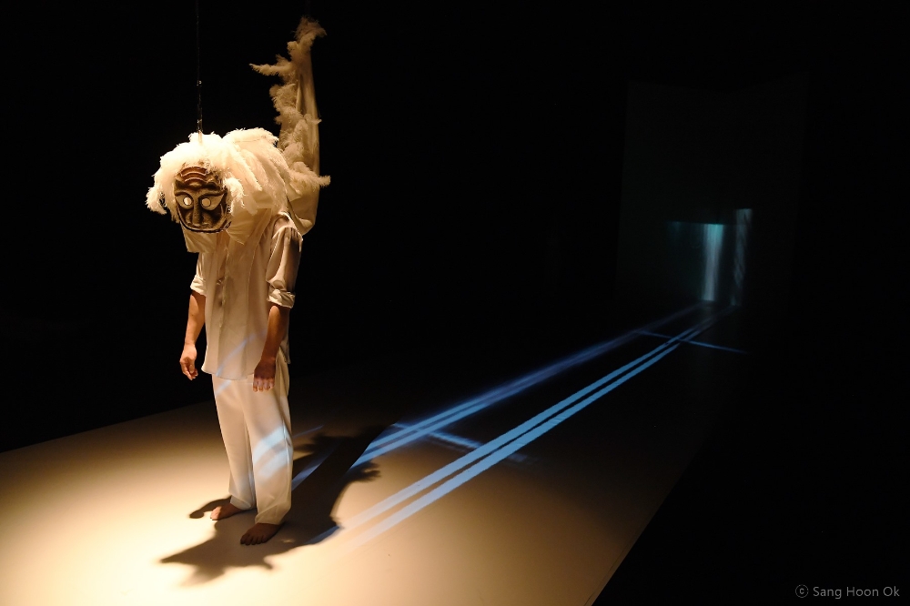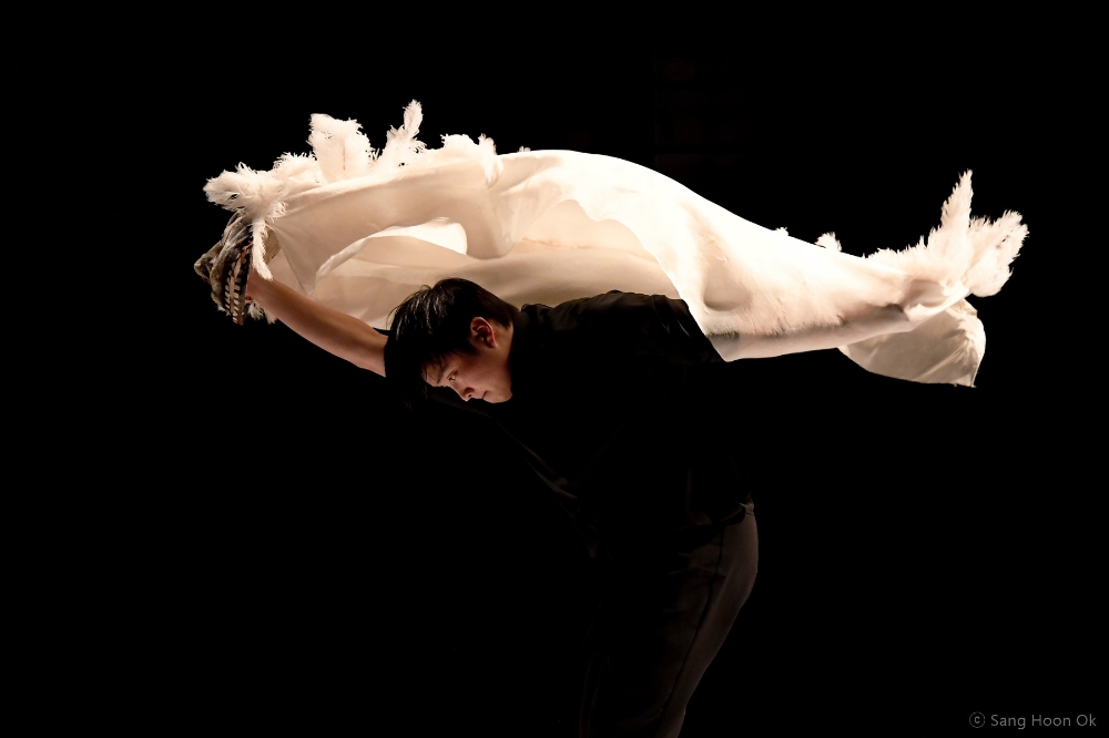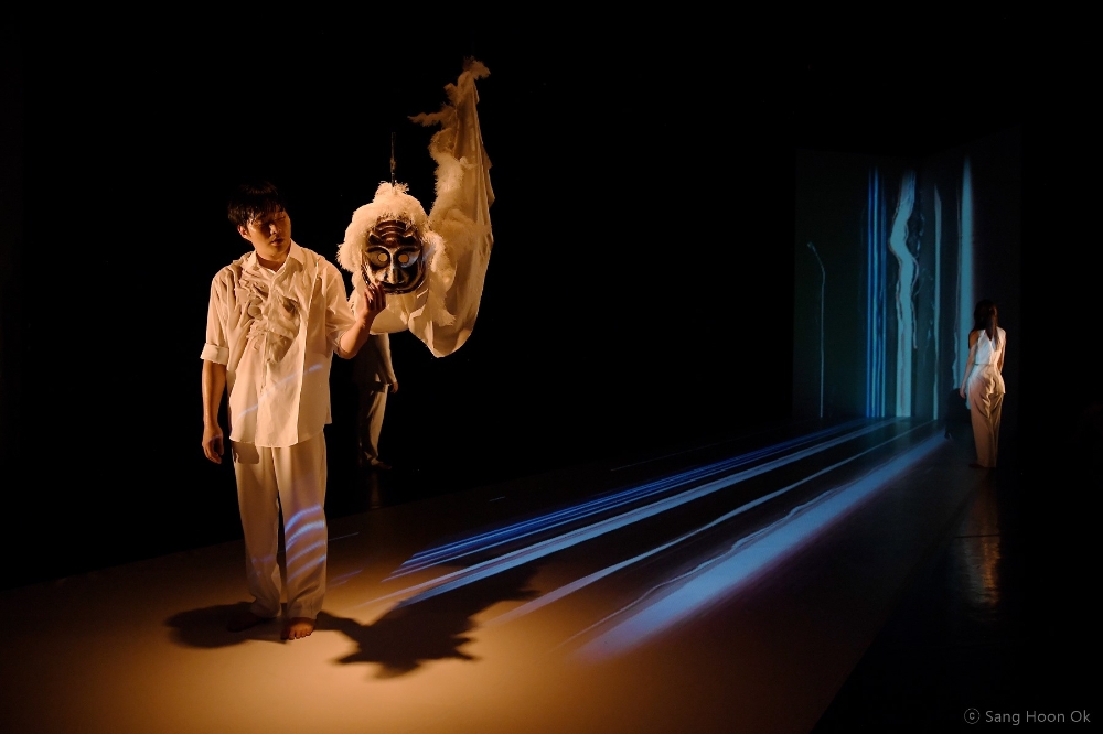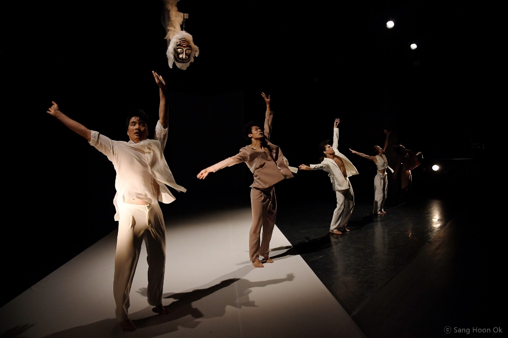 이미지 확대보기「새다림」은 대각선의 흰 플로어를 제의적 성소(聖所)로 삼는다. 청신(請神), 영신(迎神), 오신(娛神), 송신(送神)의 틀 속에 인접 구성 요소들은 안무가에 의해 의도적으로 약화(略化)된다. 현대화의 단색 풍경을 닮은 의상과 플로어, 악기와 장단은 타악을 넘어 간결한 의식적 분위기를 자아낸다. 무구(巫具)와 무복(巫服)에 대한 사유는 일상적 몸짓으로 맑은 아침을 몰아온다.