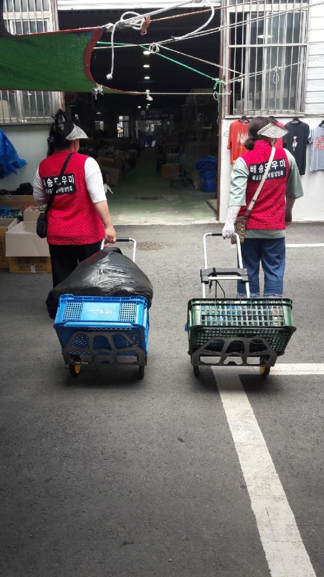 이미지 확대보기전남 해남읍 5일시장이 서는 1일과 6일이 되면 시장 이용객들의 무거운 짐을 덜어주는 ‘도우미’들을 만날 수 있다.