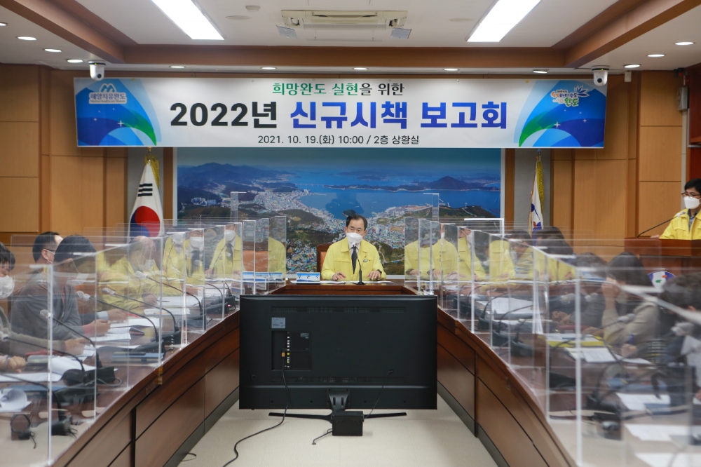 이미지 확대보기전남 완도군(군수 신우철)은 지난 19일 군청 상황실에서 봉진문 부군수와 국장, 기획예산담당관 등 간부 공무원, 시책 제안자가 참석한 가운데 내년도 신규 시책 보고회를 개최했다.