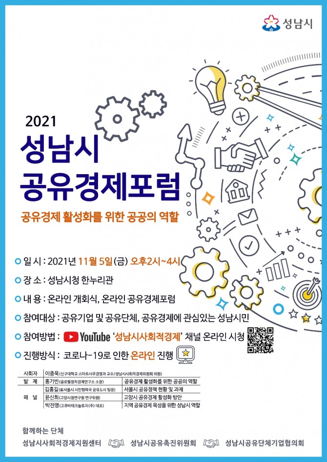 경기도 성남시(시장 은수미)는 오는 5일 오후 2시 공유경제 활성화와 공공의 역할 모색을 위한 온라인 포럼을 개최한다.