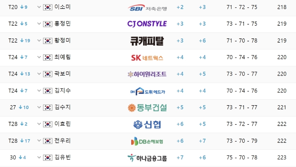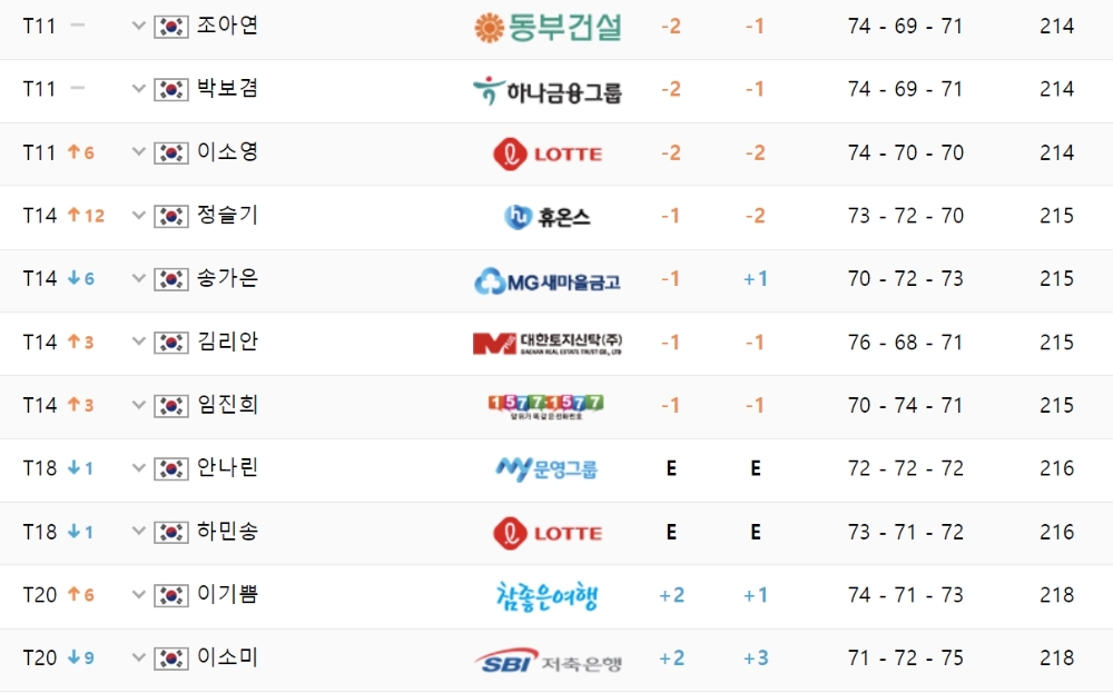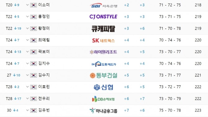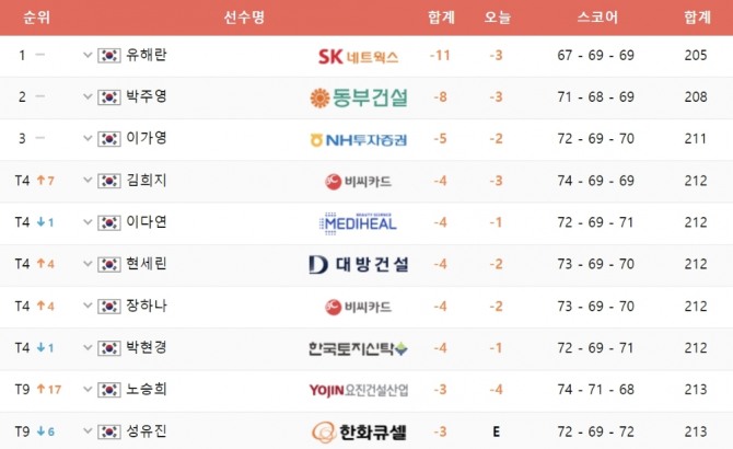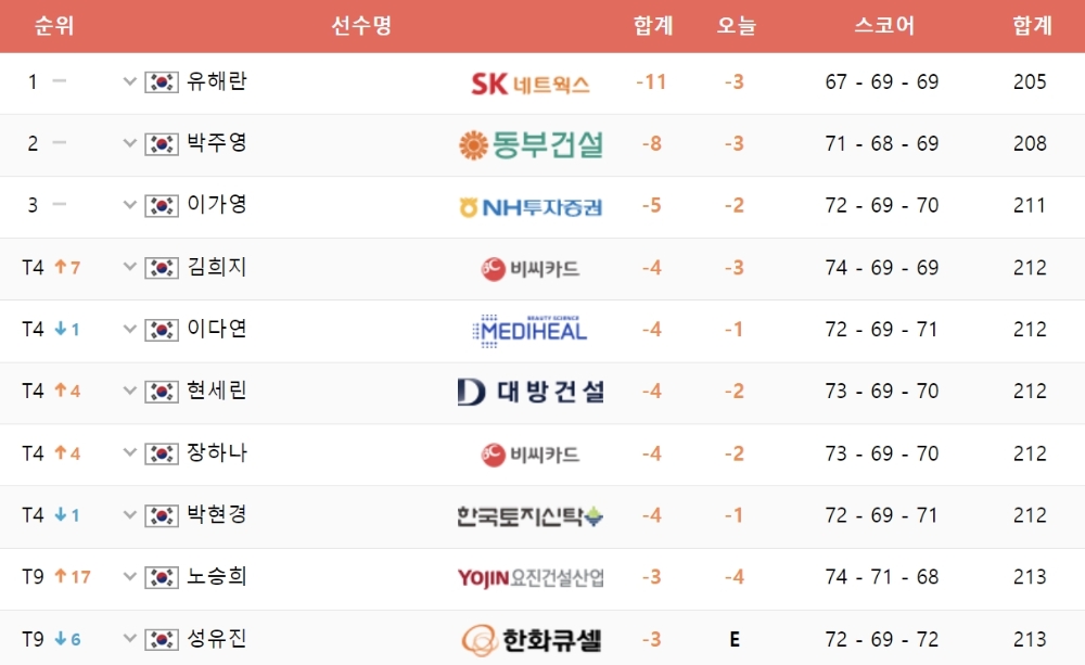 [KLPGA]1.유해란 -11, 2.박주영 -8, 3.이가영 -5, 4.김희지-이다연-현세린-장하나-박현경 -4...SK쉴더스-SK텔레콤 최종 성적