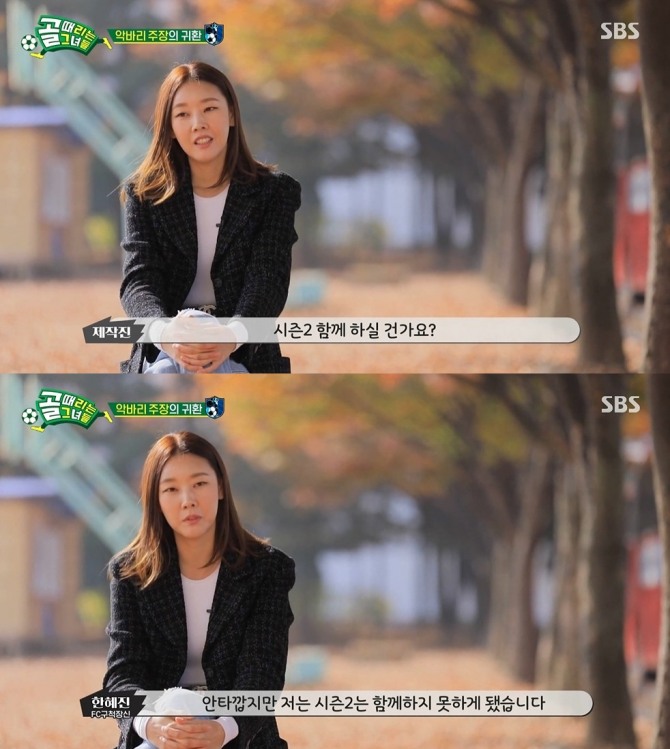 먼저 한혜진이 고질적인 왼쪽 무릎 부상으로 인하여 하차하게 됐다. 이날 한혜진은 "시즌 2에 함께 할 것이냐?"는 제작진의 질문에 "안타깝지만 함께하지 못한다"고 답했다. 열정적으로 참여했던 '골때녀' 하차 이유를 묻자 한혜진은 "2006년 뉴욕에서 모델 활동을 하면서 굉장히 크게 넘어진 적이 있다. 그 때 이후로 만성적인 고질병처럼 왼쪽 무릎 연골이 많이 닳아서 거의 없다"고 답해 안타까움을 자아냈다.