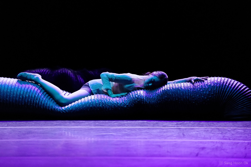 이미지 확대보기주제 ‘A&Z’에 대한 생각과 시간에 대한 탐색 속에 <Pli, 시간의 시작>은 움직임과 이미지에서도 의도된 결정성과 즉흥적으로 발생하며 나타나는 비결정적 열림의 순간을 동시에 내포한다. 구체적으로 시각과 청각이 대부분 통제된 주름관 속에서 나타나는 무용수의 즉자적인 움직임을 리서치하였으며, 바로크 음악을 새롭게 해석한 Mucof의 현대음악 ‘Versailles’와 주름관 밖에서 움직이는 무용수와의 연결성을 탐구하여 창조, 생성의 순간을 나타낸다.