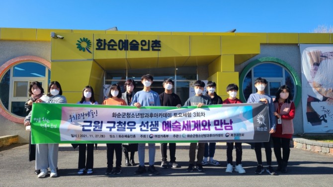 이미지 확대보기전남 화순군(군수 구충곤) 청소년방과후아카데미 참여 학생 10여 명이 27일 화순예술인촌 상설전시관과 화순군립석봉미술관에서 문화체험행사를 실시했다.