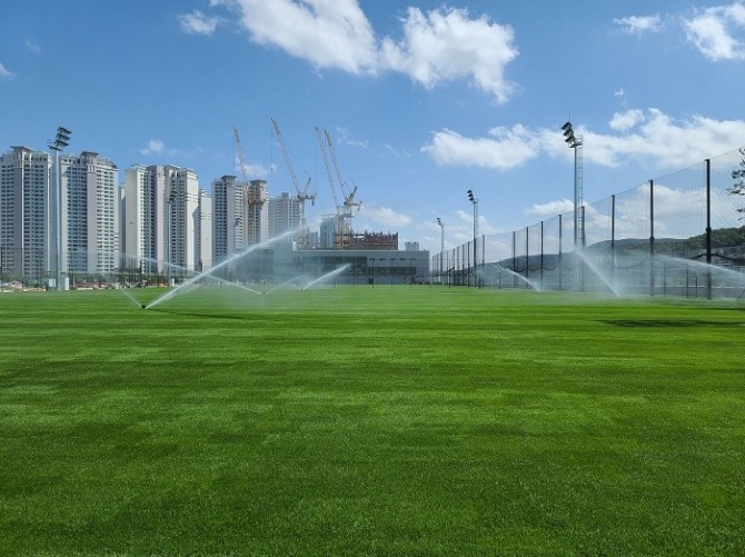 이미지 확대보기성남축구센터는 총 260억이 투입돼 지난 2019년 4월부터 분당구 정자동 4-12번지 외 1필지(한국잡월드 잔여부지)의 2만9977㎡ 시유지에 클럽하우스 건물 1개 동과 천연잔디 경기장 2면(각 68mⅹ105m)이 조성됐다.