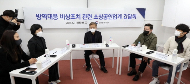 이미지 확대보기18일 권칠승 중소벤처기업부 장관이 소상공인 업계와의 간담회에서 코로나19 방역 조치 강화 및 방역지원금 지급 계획과 관련해 이같이 말했다.