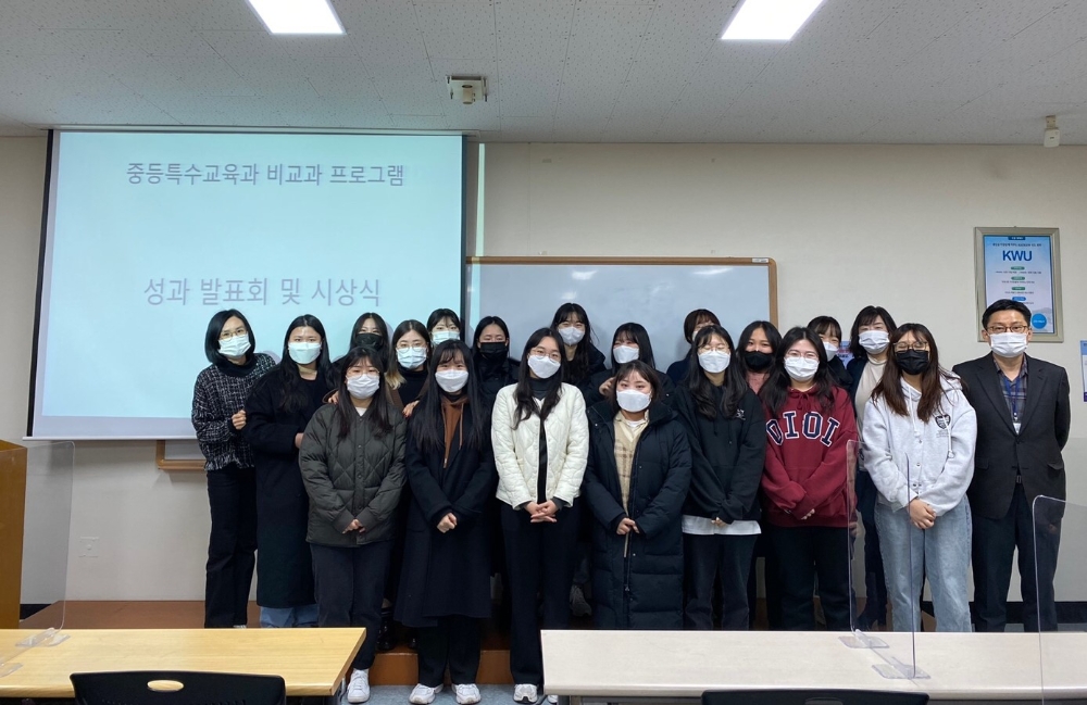 광주여자대학교(총장 이선재) 중등특수교육과는 ‘2021학년도 비교과 프로그램 우수성과 발표회 및 시상식’을 실시했다고 20일 밝혔다. 중등특수교육과에서는 지난 1년간 재학생들의 예비교사 역량 함양을 목적으로 다양한 비교과 프로그램들을 꾸준히 운영해왔다.