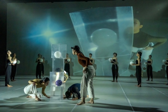 이미지 확대보기3장 ; 이 모든 순간이 어긋나거나 연결되는 것이 곧 춤이다 ; ‘백색유희’의 가공할 변주, 무대에 놓여 있는 하얀 공들은 그저 공이라는 물체, 색이 없는 하얀색이 아니라 단색화의 품위를 갖춘 다양한 사람들의 삶의 희로애락이 집약된 상징이다. 반복적 일상이 유지되고 순환되는 것은 나, 너, 우리가 몸속의 에너지를 분출하고 최선을 다해 살아가기 때문이다.