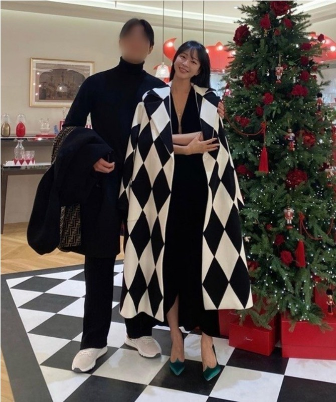 사진 속 한예슬은 올블랙 의상을 입은 남자친구에게 기대 미소를 짓고 있다. 특히 블랙 원피스를 입은 한예슬은 흑백 다이아몬드 무늬가 있는 러그 위에 비슷한 다이아몬드 패턴의 코트를 매치해 뛰어난 패션 감각을 과시했다.