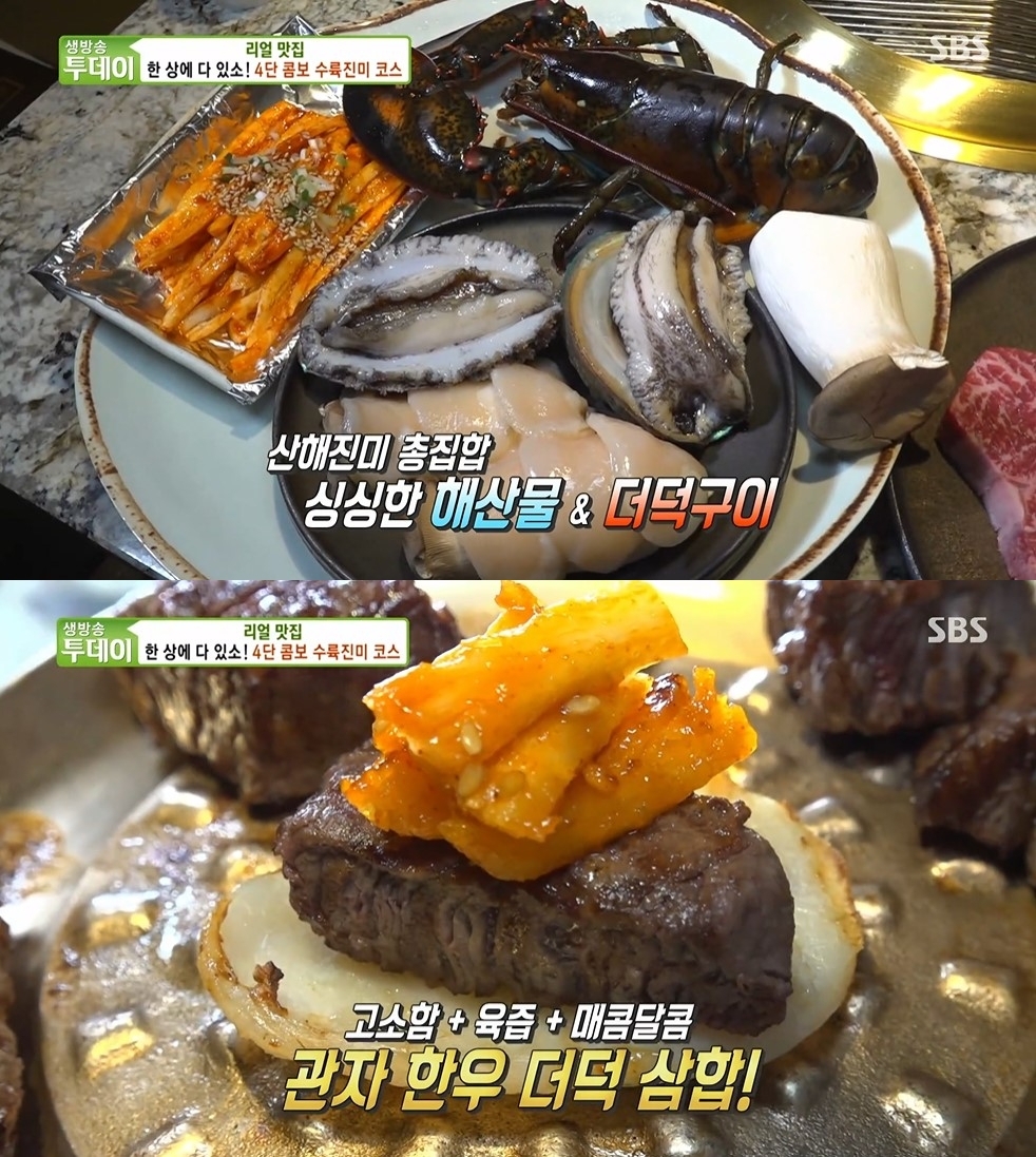 소고기 등심과 전복, 관자, 랍스터 등 소고기와 해산물 등 산해진미를 한 번에 즐길 수 있다.