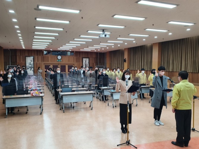 동부교육지원청의 새해 첫 공식행사로 실시된 이번 시무식 및 청렴선포식은 코로나19 상황을 감안해 방역수칙을 철저히 준수하면서 대면 및 비대면으로 진행됐다.