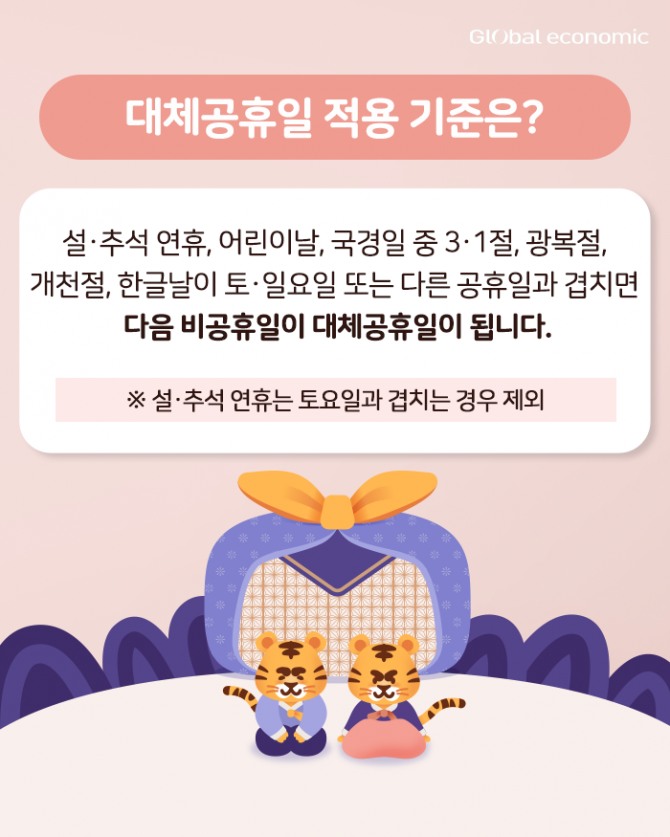 국민의 휴식권을 보장하면서 중소기업 등의 부담과 경제에 미칠 영향 등을 종합적으로 고려, 국경일에 한정해 대체공휴일을 적용하기로 했습니다.