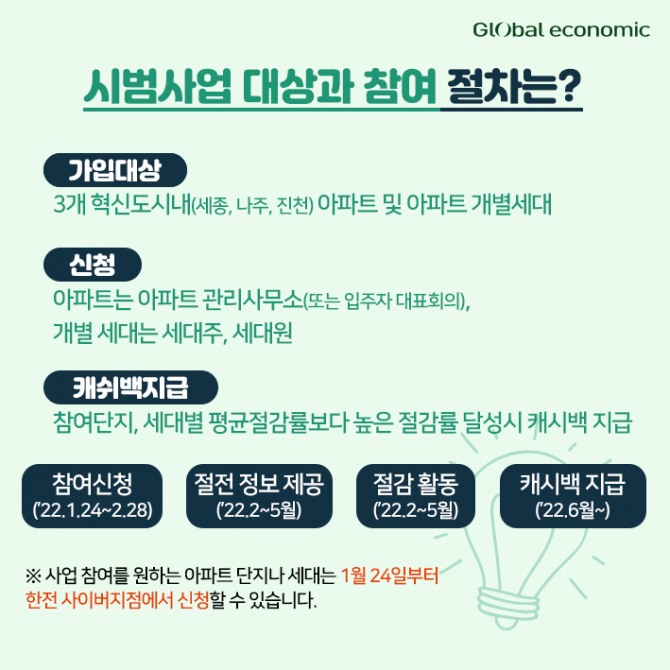 ※ 사업 참여를 원하는 아파트 단지나 세대는 1월 24일부터 한전 사이버지점에서 신청할 수 있습니다.
