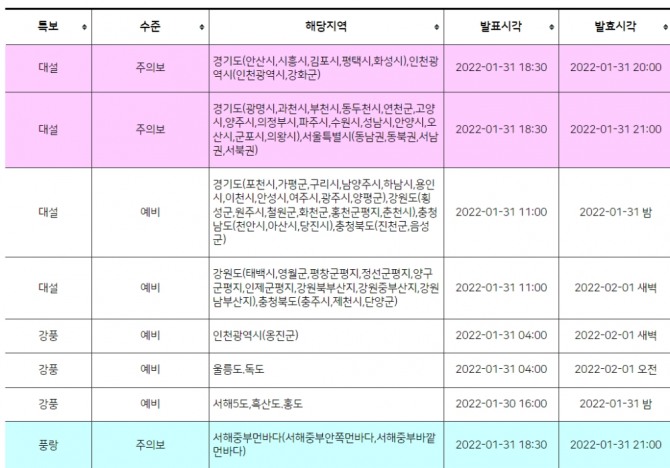 다음은 기상청 대설주의보
