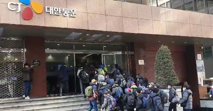 지난 10일 CJ대한통운은 택배노조원들 때문에 본사 건물의 코로나19 방역 체계가 위협받고 있다고 주장했다. 택배노조원 200여명은 10일 오전 11시 CJ대한통운 본사를 기습 점거했다.