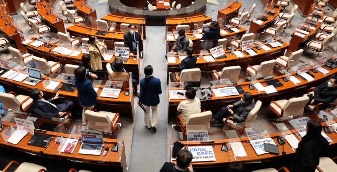 이미지 확대보기국회는 이날 오후 본회의를 열고 재석 213인 중 찬성 203인, 반대 1인, 기권 9인으로 '2022년도 제1회 추가경정예산안' 수정안을 가결시켰다.