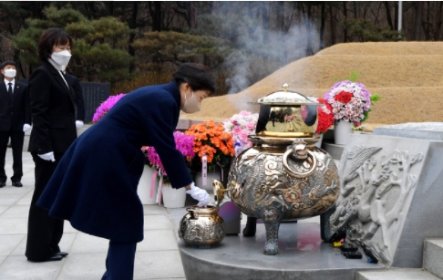 이미지 확대보기박근혜 전 대통령이 24일 오전 서울 동작구 국립서울현충원을 찾아 고 박정희 전 대통령 내외 묘역에 참배하고 있다.사진=뉴시스