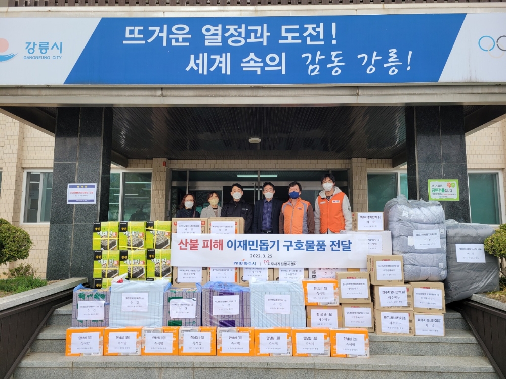 경기도 파주시는 지난 25일 (사)파주시자원봉사센터와 함께 산불로 피해를 입은 자매도시인 강릉시(옥계면사무소)와 동해시에 방문해 1억 1600만원 상당의 구호물품을 전달했다고 28일 밝혔다.