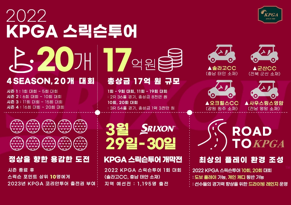 KPGA 스릭슨투어는 KPGA가 주관하는 3개의 투어(코리안투어, 스릭슨투어, 챔피언스투어) 중 가장 먼저 시즌을 맞는다. 공식투어 개막전인 KPGA 스릭슨투어 1회 대회는 29, 30일 충남 태안 소재 솔라고 컨트리클럽의 솔코스에서 펼쳐진다.