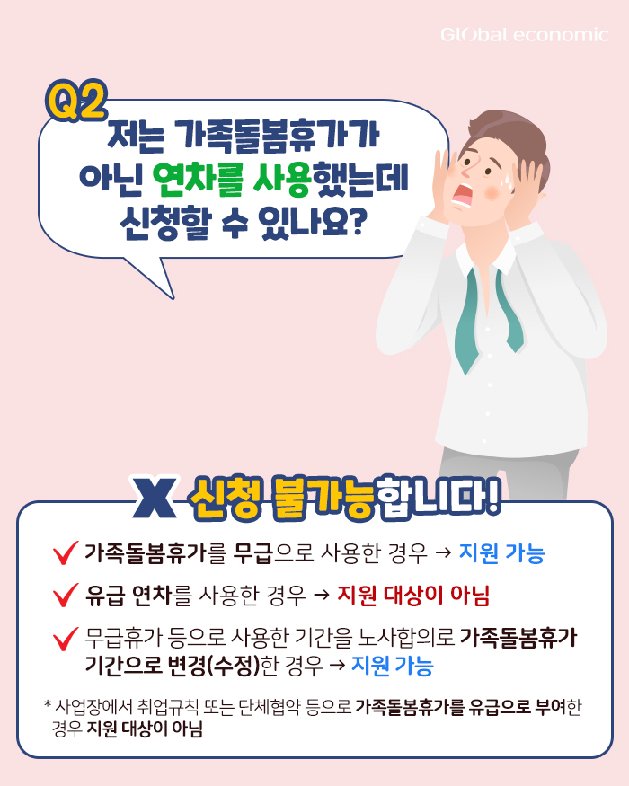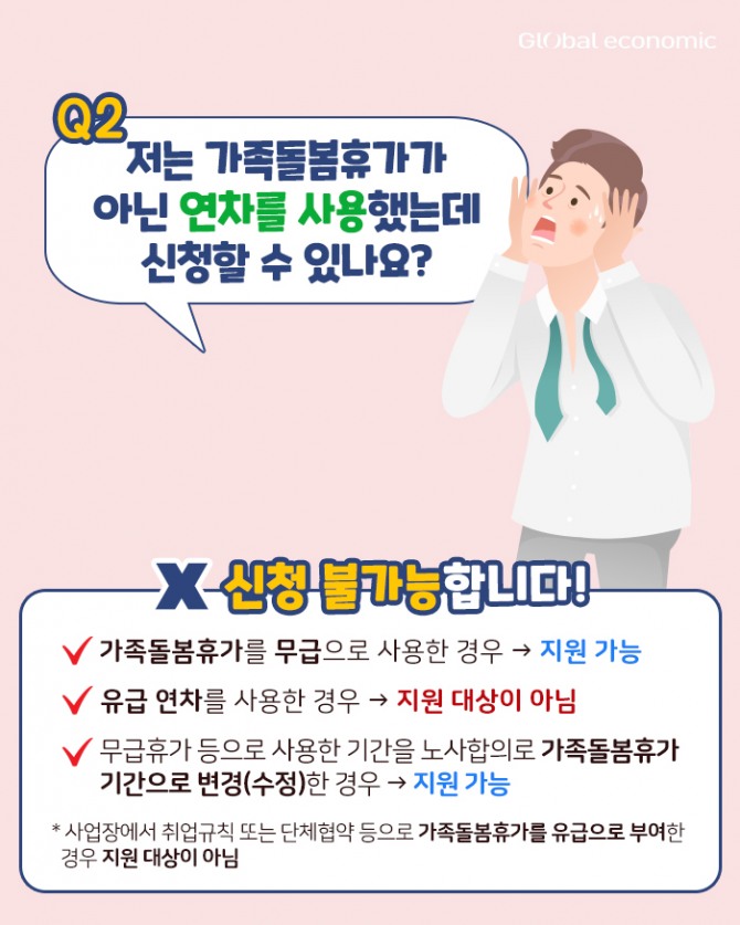 ② 그 기간 가족돌봄휴가를 무급으로 사용했다면 지원 가능