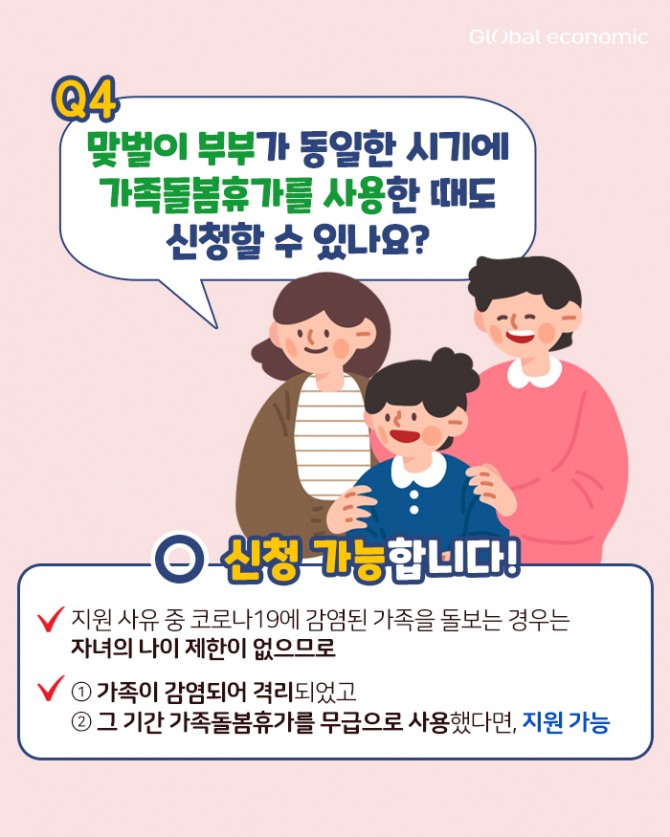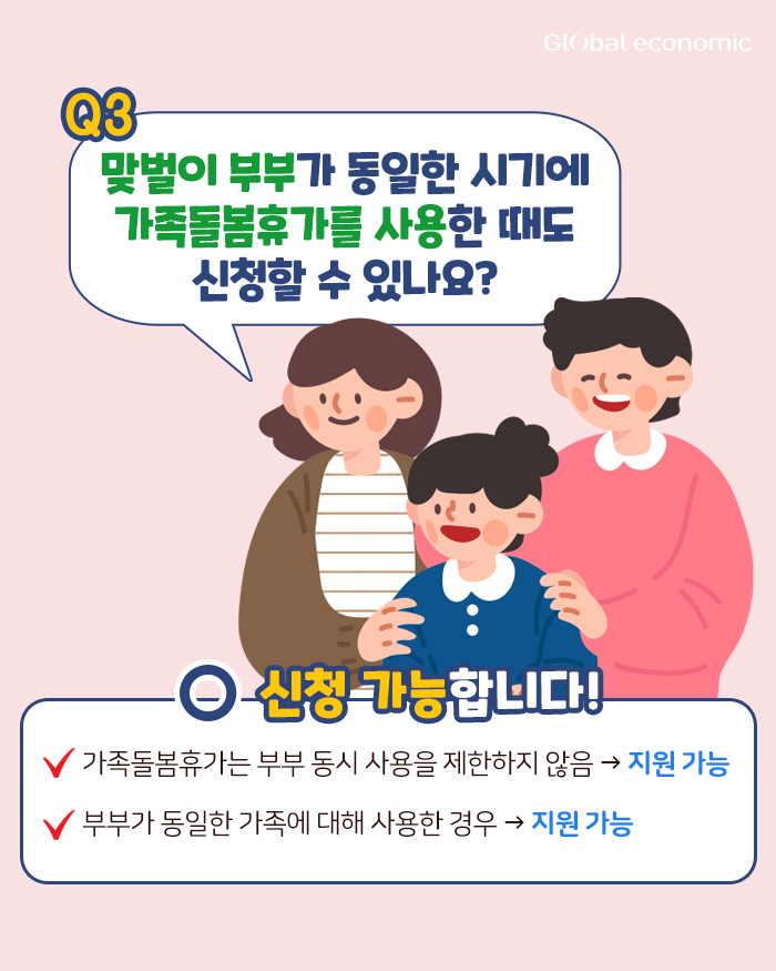Q3. 맞벌이 부부가 동일한 시기에 가족돌봄휴가를 사용한 때도 신청할 수 있나요?