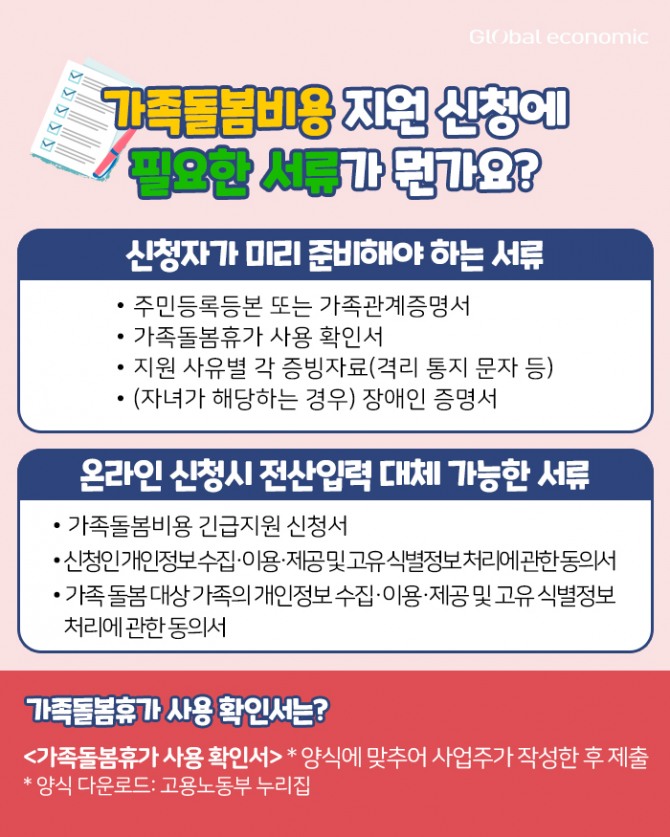 ◆ 가족돌봄비용 지원 신청에 필요한 서류가 뭔가요?
