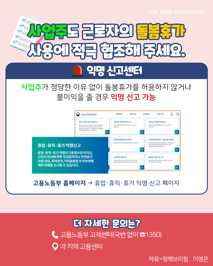 사업주가 정당한 이유 없이 돌봄휴가를 허용하지 않거나 불이익을 줄 경우 익명 신고 가능