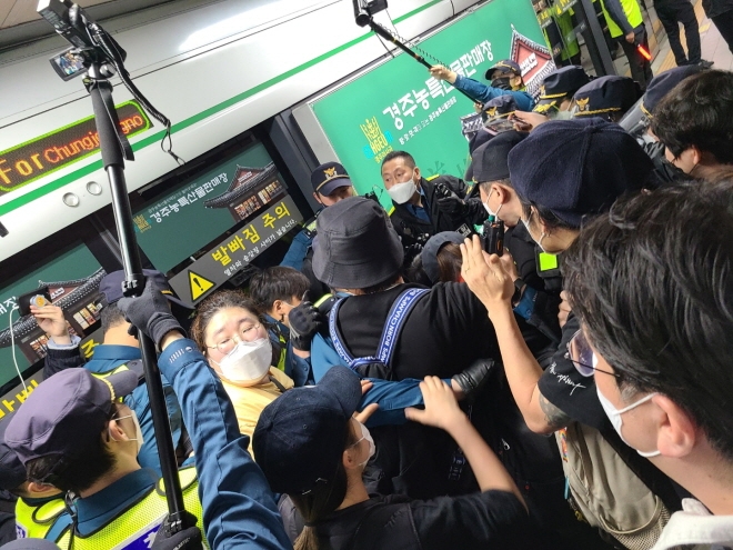 이미지 확대보기한편, 서울교통공사 관계자는 21일 입장문을 통해 교통약자 이동권 보장을 위해 노력하고 있다는 점과 출근길 시위를 자제해 달라고 요청한 바 있다.