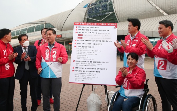 유정복 후보는 “매립지는 골칫덩이에서 복덩어리가 될 것”이라며 “매립지를 품고 있는 서구는 발전 잠재력이 무궁하고 교통망이 대폭 확충돼 수도권 서부의 중심으로 부상할 것”이라고 말했다.