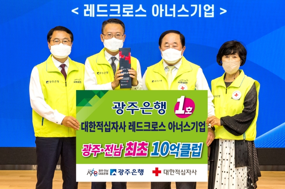 지난 2020년 대한적십자사 5억 클럽에 광주·전남 1호로 가입한 광주은행은 이번 10억 클럽에도 광주·전남 1호로 이름을 올리며 지역사회에 나눔봉사의 아름다운 기업문화를 전파하는데 선두주자로 자리매김했다.