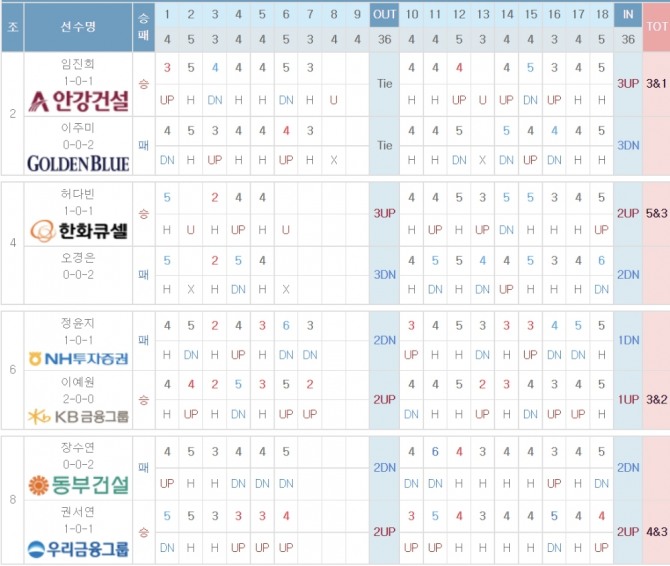 박주영은 조별리그 3차전에서 허다빈(24·한화큐셀)과 16강 티켓을 놓고 대결한다. 작년 12월 결혼해서 임신한 박주영은 오는 9월 출산을 앞두고 있다. 박주영은 1차전에서 오경은(22)에게 12번홀에서 끝낸 데 이어 이날 16번홀에서 경기를 마무리 지어 체력 부담도 덜었다.