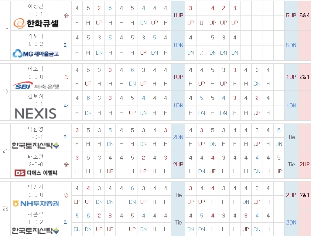 임신 6개월의 '예비 엄마' 박주영(32·동부건설)과 대회 2연패 및 2주 연속 우승을 노리는 박민지(24·NH투자증권)이 이틀 연속 우승하며 16강 진출을 눈앞에 두고 있다.