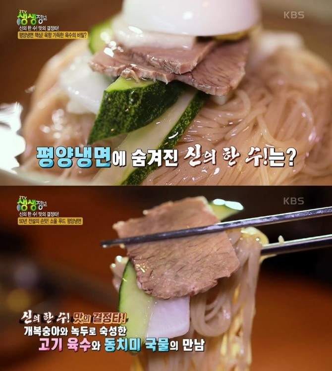 '신의 한 수! 맛의 결정타!' 코너에는 "50년 전설의 손맛! 평양냉면과 녹두지짐" 편으로 <만포면옥>이 선정됐다.