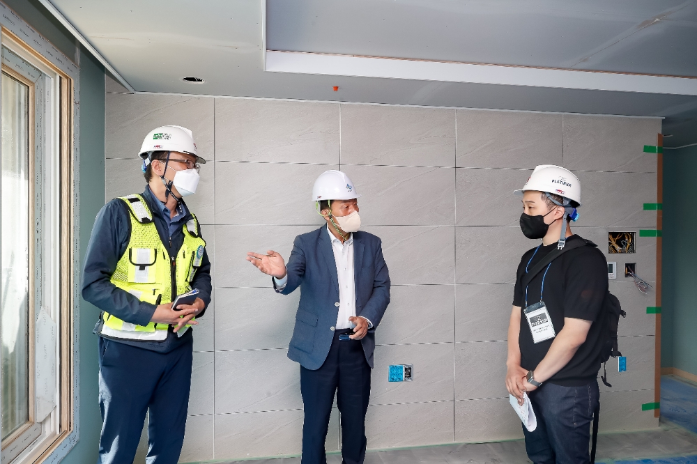 이미지 확대보기이재준 수원특례시장 당선인이 아파트 공사지연으로 입주 예정자들이 시공 품질이 우려된다는 민원이 속출한 쌍용 더 플래티넘 오목천역 공사 현장을 방문했다.