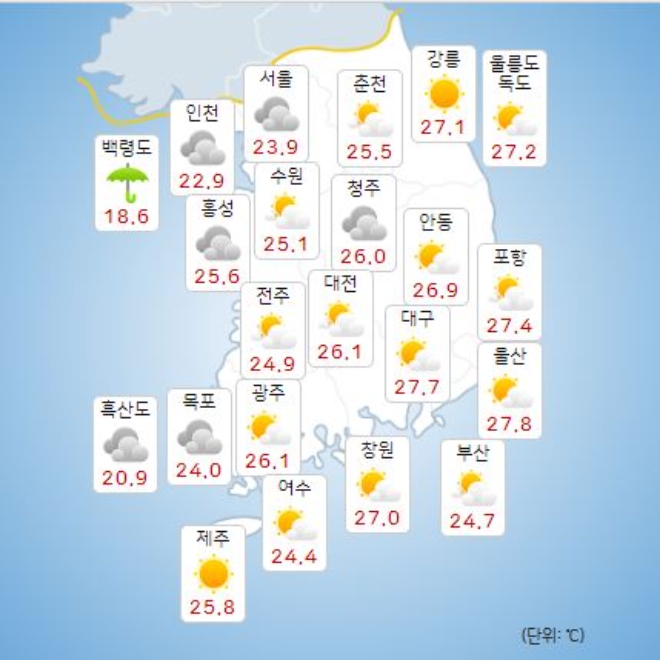 이어 서울은 30℃, 대구는 33℃까지 기온이 치솟겠으며, 오전 11시를 기해 대구와 경북 곳곳에 '폭염주의보'를 발효했다.
