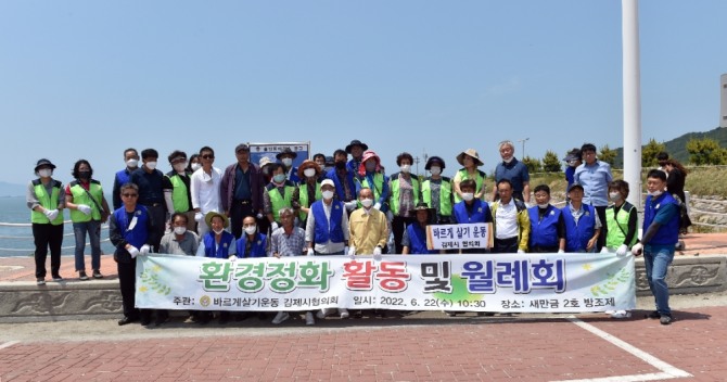 이미지 확대보기바르게살기운동 김제시협의회(회장 이권재) 및 새만금공동발전범시민위원회(위원장 이권재)는 지난 22일 새만금 제2호 방조제에서 회원 40여명이 참여한 가운데 환경정화 봉사활동을 실시 하였다.