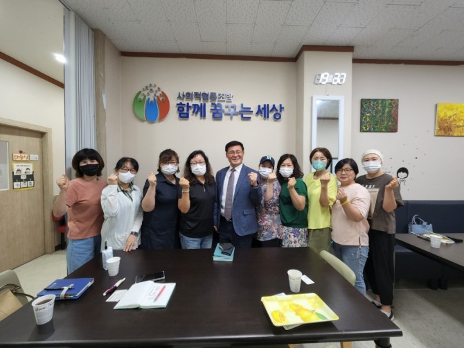 고윤석 본부장은 19일 상록구 본오동에 위치한 사회적협동조합 “함께 꿈꾸는 세상”을 방문해 문순덕 이사장과 봉사자들을 만나 이야기를 나누며 애로사항을 들었다.
