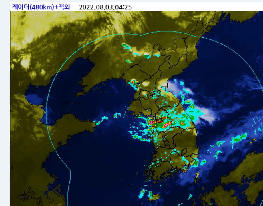 이미지 확대보기기상청은 3일 새벽 전국 일기예보에서 서울.인천.경기서부에 호우특보가 발효된 가운데, 인천과 경기서해안에는 천둥.번개를 동반한 시간당 40mm 내외의 매우 강한 비가, 서울 등 그 밖의 수도권과 강원도에는 시간당 20mm 이상의 강한 비가 내리는 곳이 있다고 밝혔다. 기압골의 영향으로 경기만에서 강한 비구름대가 발달하며 동쪽으로 이동하고 있어, 오늘(3일) 오전(09~12시)까지 수도권과 강원도에는 천둥.번개를 동반한 시간당 30~50mm 이상의 강한 비가 내리는 곳이 있겠다는 것이다. 기상청은 특히 도권과 강원도에는 호우특보가 확대될 가능성이 있겠다고 예보했다.