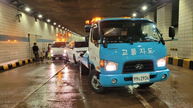 안산도시공사는 폭우가 내린 9일 오전 1~5시 동안 지하차도에 침수된 차량 4대를 신속히 이동 조치로 2차 사고를 막았다. 사진=안산도시공사