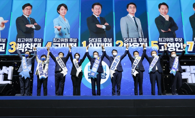 권리당원만을 대상으로 한 지역순회 경선은 전날 경기·서울을 끝으로 종료된 가운데 당 대표 선거에선 이재명 후보가 압도적 1위를 달리고 있다.